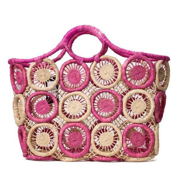 • Unglaublich stylische Einkaufstasche aus gewebtem Papierstroh. Zwei Griffe oben. Das Modell sieht rosa und beige aus. Perfekt für den Sommer stylizac