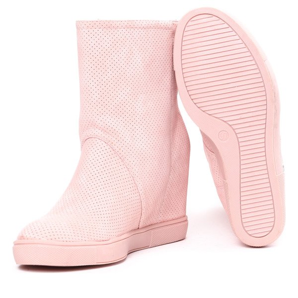 - Klassische Stiefel auf dem Indoor Wedge in Pink. Das Obermaterial besteht aus Öko-Wildleder und hat einen dekorativen Reißverschluss. Modell mit Reißverschluss. Sie passen in alltägliche und außergewöhnliche Situationen. Die beste Ergänzung zu passenden H