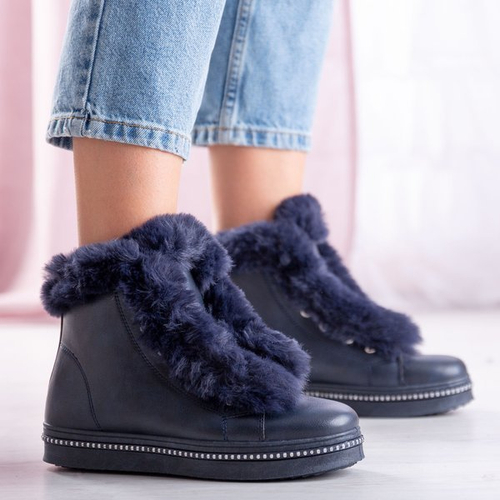 Dunkelblaue Plateaustiefel mit Salyssa-Fell - Schuhe