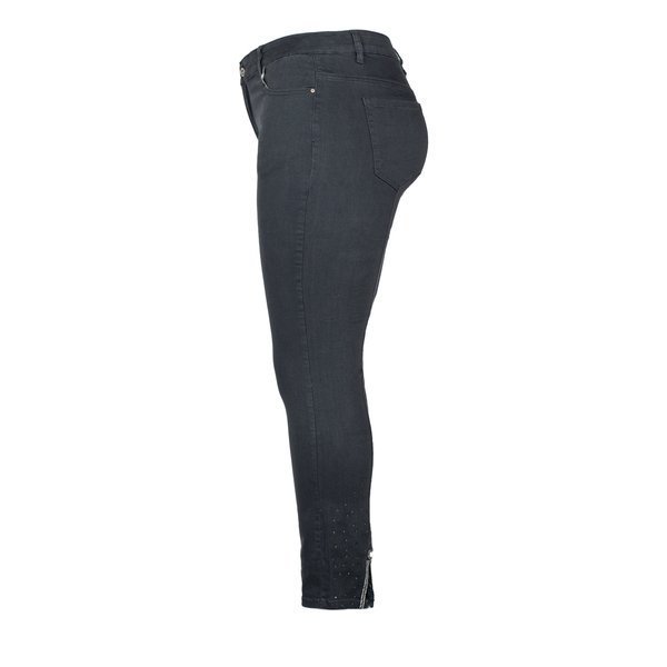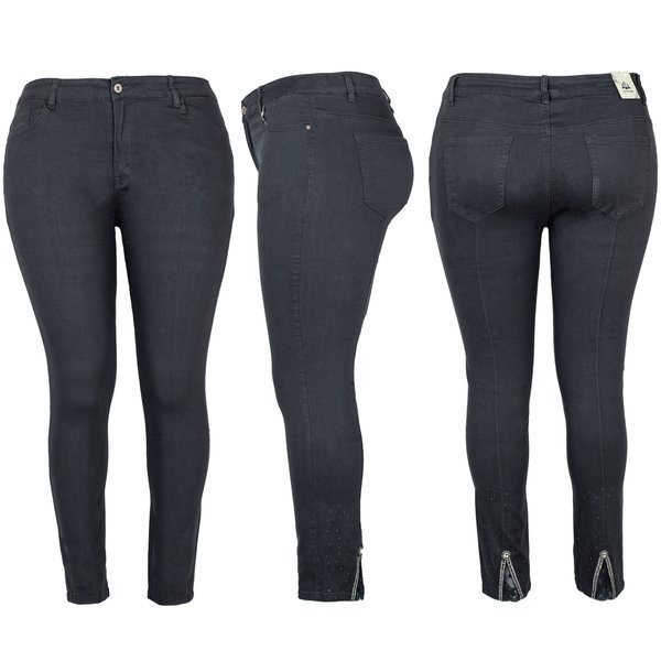 • Hochtaillierte Jeans aus Graphit-Material. Die Hose hat einen Knopf- und Reißverschluss. Die Unterseite der Beine hat eindrucksvolle Verzierungen in Form von Spitze und hellen und dunklen Zirkonen. HINWEIS: Messgenauigkeit (+/-) 1 cm