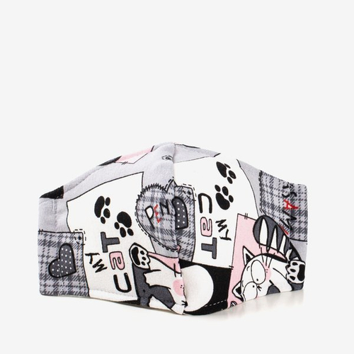 • Wiederverwendbare Frauengesichtsmaske. Die Maske besteht aus 3 Stofflagen. Dank Gummibändern passt es perfekt zu jedem Gesicht. Sie können es zu Hause, auf der Straße oder bei der Arbeit verwenden.