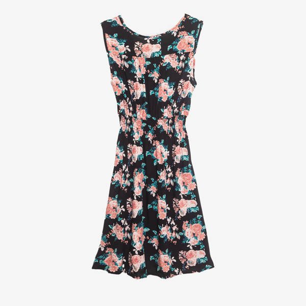 Schwarzes Kleid über dem Knie mit Blumen - Kleidung 1