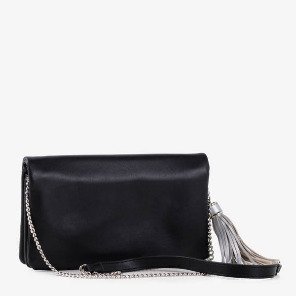 • Elegante Umhängetasche aus Öko-Leder in schwarzer Farbe. Seitlich mit einer grauen Quaste verziert. Im Inneren befinden sich 2 Fächer mit Reißverschluss. Das Ganze ist mit einem Magneten befestigt.