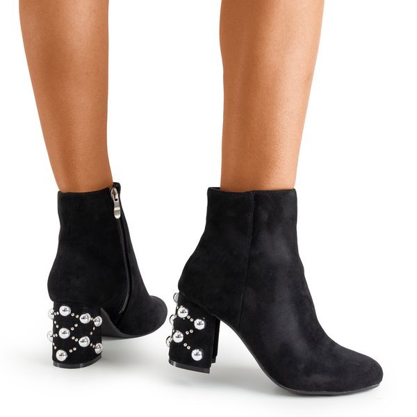 - Geschmackvolle Damenstiefel auf einem höheren Pfosten, verziert mit Strasssteinen. Das Obermaterial besteht aus Öko-Wildleder, während die Innensohle mit Stoff bezogen ist. Das Modell ist mit einem seitlichen Reißverschluss befestigt. Das Produkt ist nich