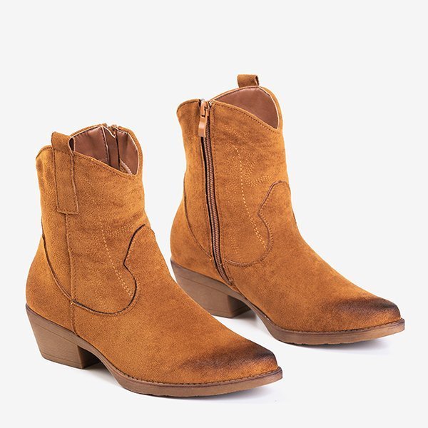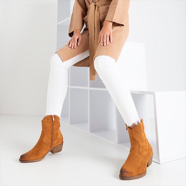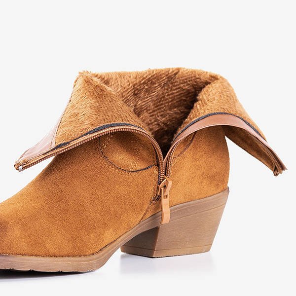 - Modische Stiefel mit flachen Absätzen und Cowboystiefel aus Öko-Wildleder in brauner Farbe. Das Modell ist mit einem weichen Fell isoliert. Schuhe mit einem Reißverschluss an der Seite und einem spitzen Zeh. Perfekt für den Alltag Garderobe!