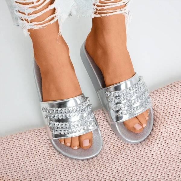 OUTLET Silberne Hausschuhe mit einer Kette Slivien - Footwear