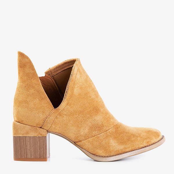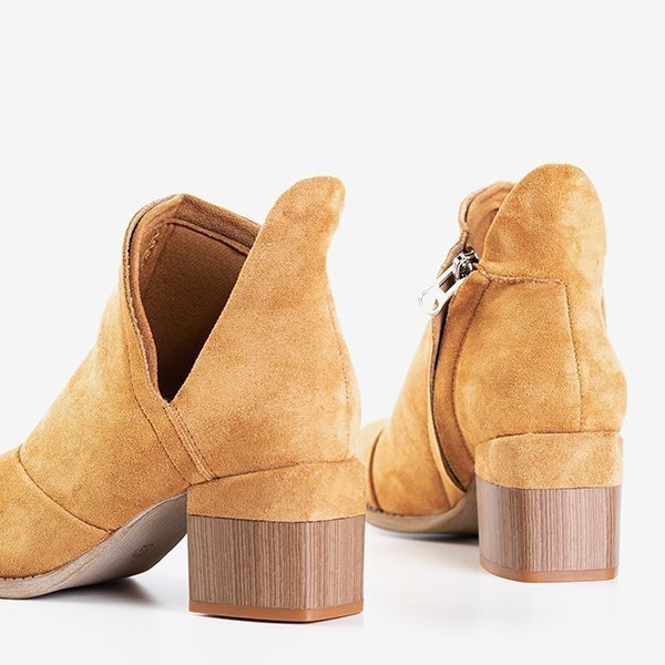 - Modische Damenstiefeletten mit Ausschnitten am niedrigen Pfosten. Das Obermaterial besteht aus Öko-Wildleder in Braun und der Einsatz ist mit Stoff bezogen. Das Modell ist innen mit einem Reißverschluss befestigt. Passt perfekt zu jedem alltäglichen Styli