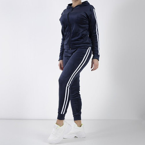 Dunkelblauer Trainingsanzug für Damen mit weißen Streifen - Kleidung