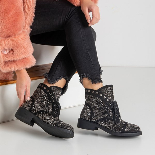 Schwarze Damenstiefel mit Zirkonia Elwira - Schuhe