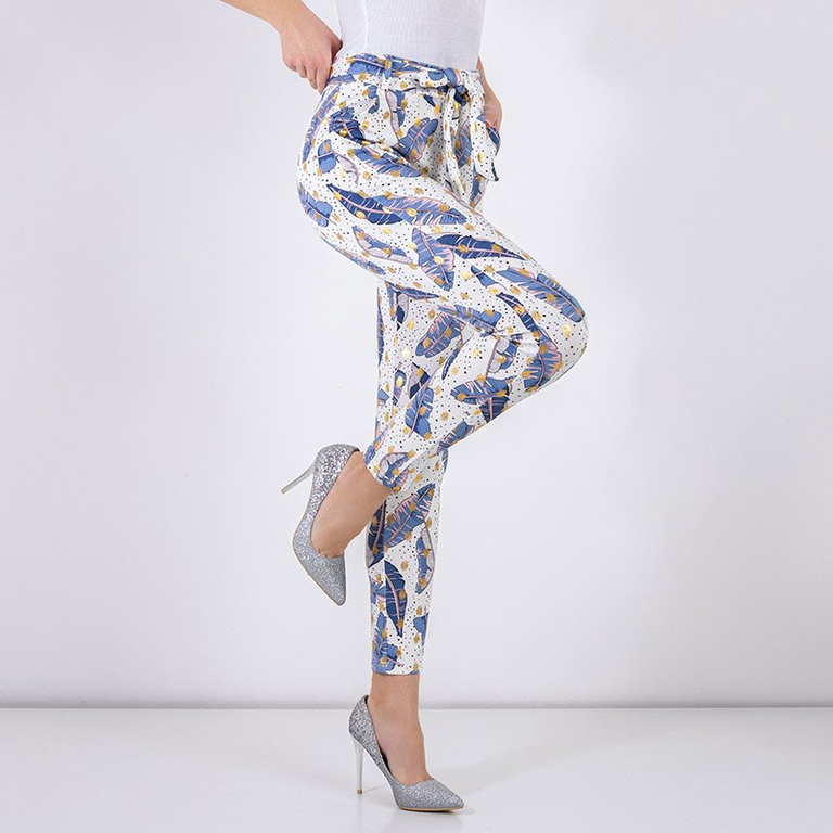 - Elegante Damen-Treggings aus dehnbarem Stoff mit Federn. Das Modell hat einen elastischen Bund, zwei Steckfächer und einen farblich passenden Gürtel. Das perfekte Accessoire für Ihr Shirt! HINWEIS: Messgenauigkeit (+/-) 1 cm