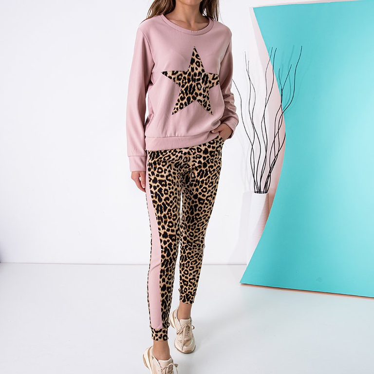 - Modisches Trainingsanzug-Set für Damen aus Polyamid. Überzogenes Sweatshirt - mit dekorativem Aufdruck. Hose mit Taschen, Gummiband an Taille und Beinen. HINWEIS: Messgenauigkeit (+/-) 1 cm.