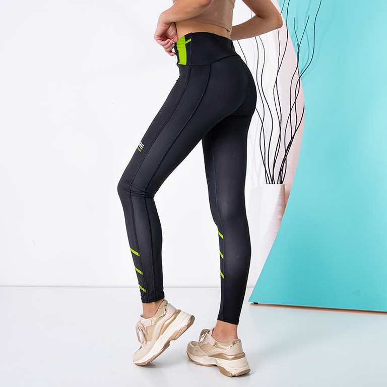 Schwarze Leggings mit grünen Einsätzen - Kleidung