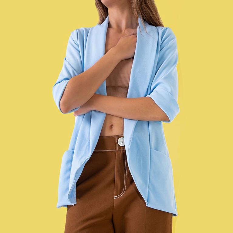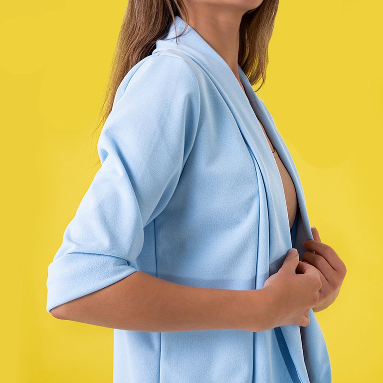 - Stilvoller Damenumhang aus Polyestermaterial. Das Modell hat vorne keinen Verschluss - zwei Taschen, Ärmel mit einer Länge von 3/4. Perfekt für jedes Styling. HINWEIS: Messgenauigkeit (+/-) 1 cm.