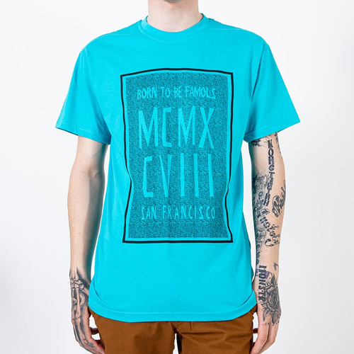 Türkisfarbenes Baumwoll-T-Shirt mit Aufdruck - Kleidung