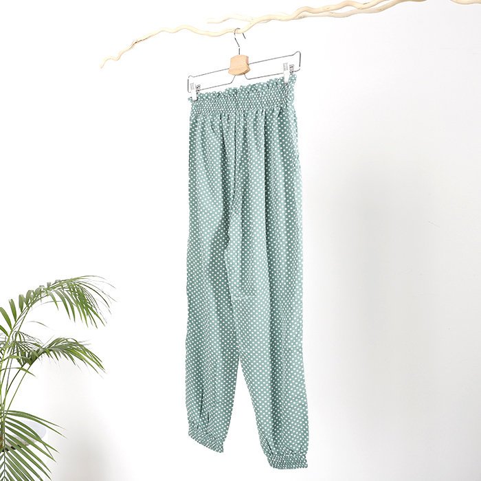 - Leichte gepunktete Damen Stoffhose aus Stoff mit hohem Baumwollanteil. Das Modell hat einen elastischen Bund und Beine, Zierriemen und 2 Einschubtaschen. HINWEIS: Messgenauigkeit (+/-) 1 cm.