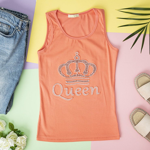 - Geschmackvolles Damentop mit breiten Trägern, aus Baumwollstoff. Modell mit Rundhalsausschnitt, verziert mit Cubic Zirkonia auf der Vorderseite. HINWEIS: Messgenauigkeit (+/-) 1 cm. Maße flach gemessen.