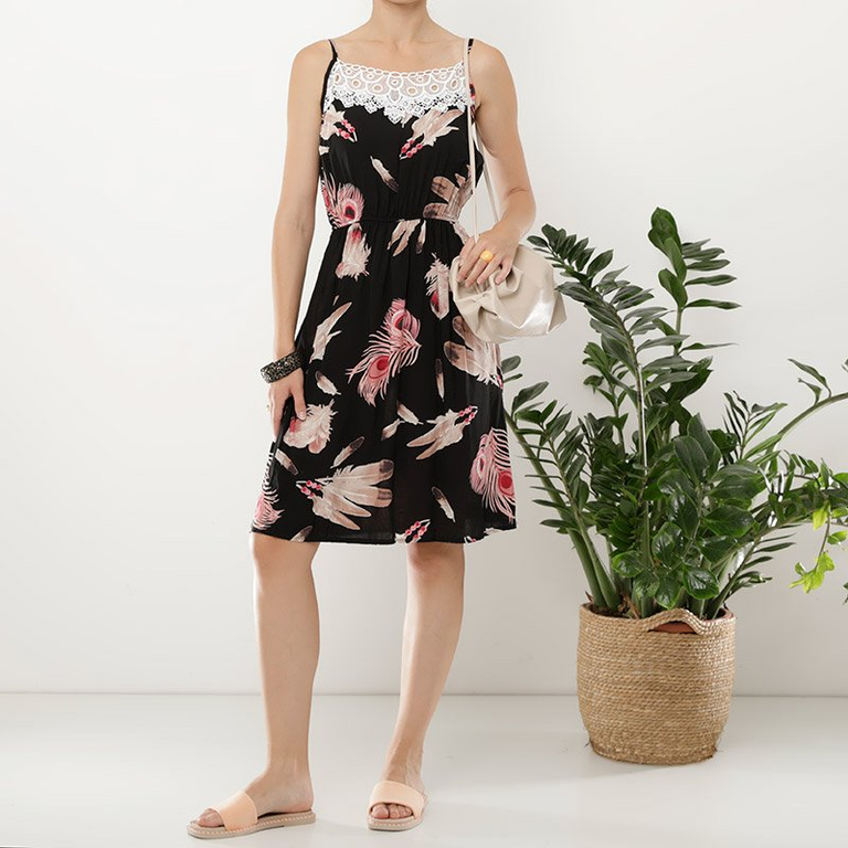 - Damen-Sommerkleid mit leicht ausgestelltem Schnitt, aus Baumwollstoff. Das Modell mit dünnen verstellbaren Trägern hat einen V-Ausschnitt mit Spitze und einen elastischen Bund. Perfekt für den Sommer! HINWEIS: Messgenauigkeit (+/-) 1 cm.