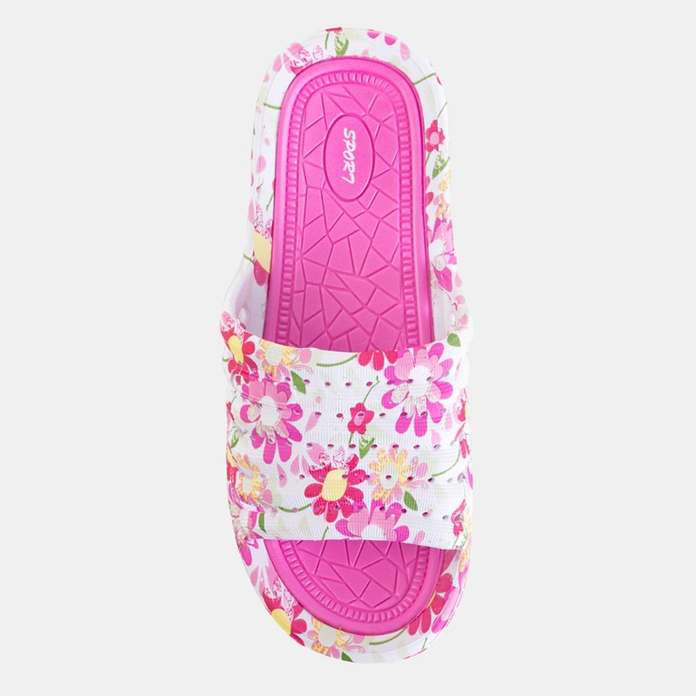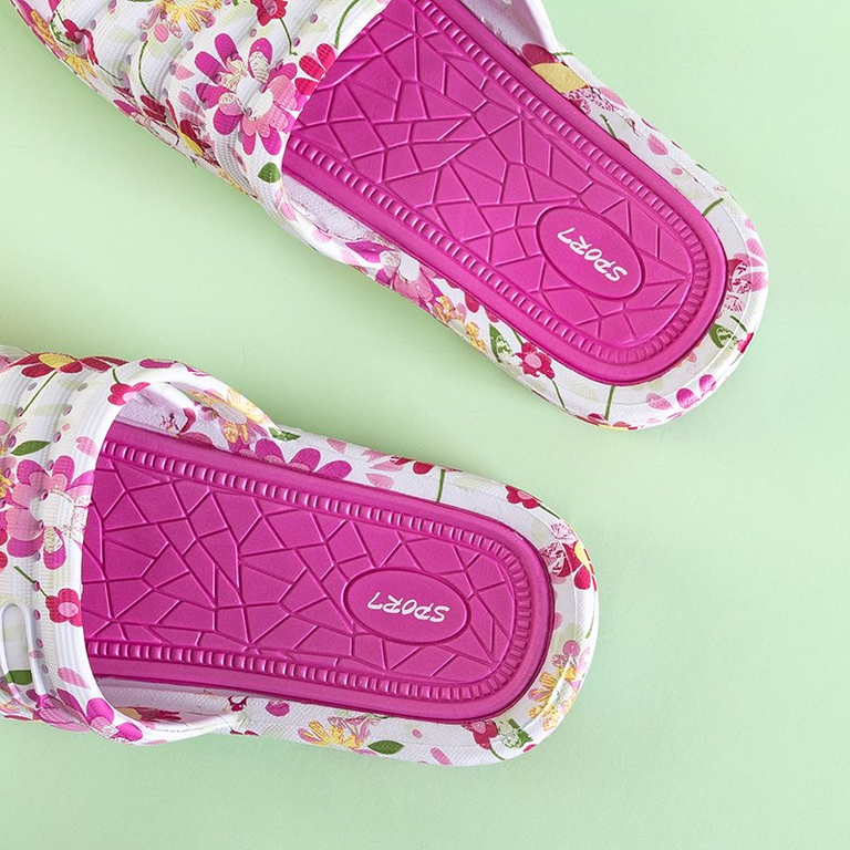 Rosa Gummipantoffeln mit Blumen Leda - Schuhe