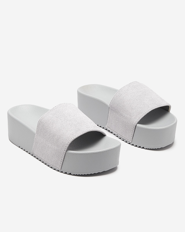 - Schöne Damensandalen auf hohem Plateau. Sehr bequem durch den breiten Gürtel aus Öko-Wildleder. Passend zu jedem sommerlichen Styling, egal ob lässig oder elegant.