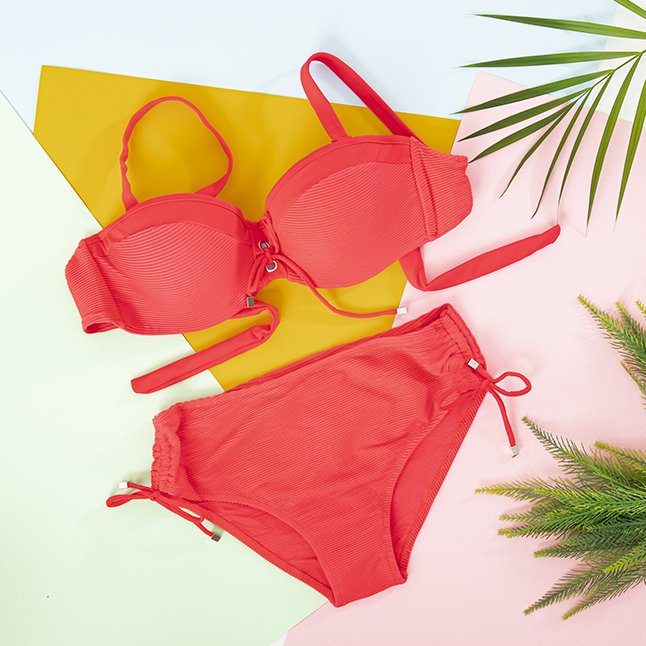 • Niezastąpiony komplet kąpielowy na lato, zdobiony paseczkami. Biustonosz push-up z regulowanymi ramiączkami i wiązaniem z tyłu. Majtki typu figi - idealne dla tych, którzy cenią komfort. UWAGA: Dokładność pomiaru (+/-) 1 cm.
