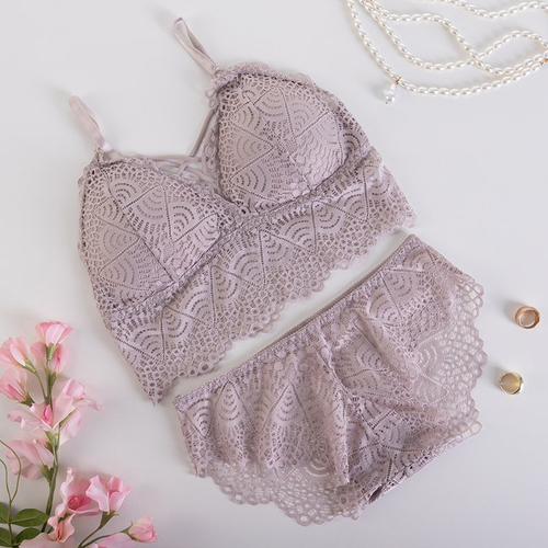 Hellrosa Damenunterwäscheset aus Spitze - Underwear