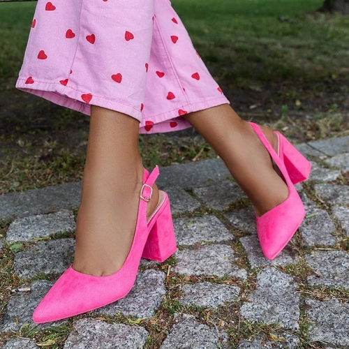 OUTLET Neonrosa Damensandalen mit hohen Absätzen Dolores - Schuhe