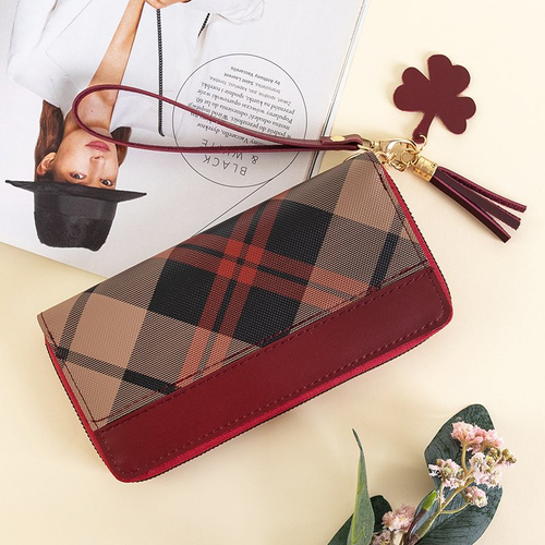 Großes bordeauxrot kariertes Damenportemonnaie - Portemonnaie