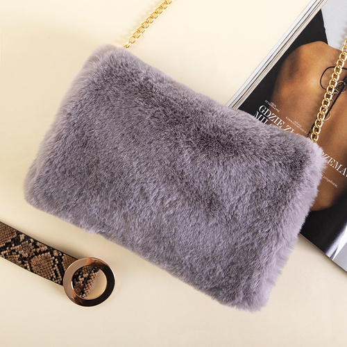 • Eine weiche Damenhandtasche, die mit Kunstpelz veredelt und mit einem Reißverschluss geschlossen wird. Das Set enthält eine goldene Kette, die mit einem Karabinerverschluss befestigt ist. Ein Fach innen, keine zusätzlichen Taschen. Perfekt für Abendoutfit