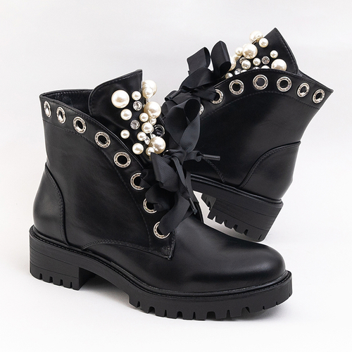Schwarze Damenstiefel mit Perlen Dwin- Footwear