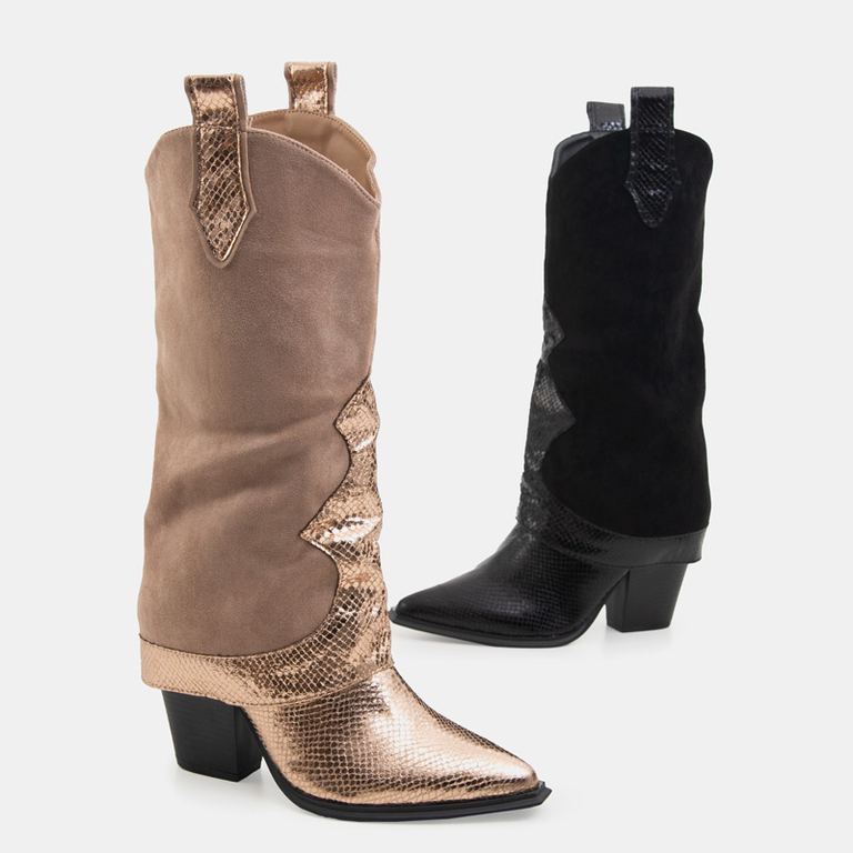 Schwarze Stiefel mit verziertem Obermaterial a'la Schlangenhaut Wica- Schuhe