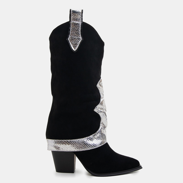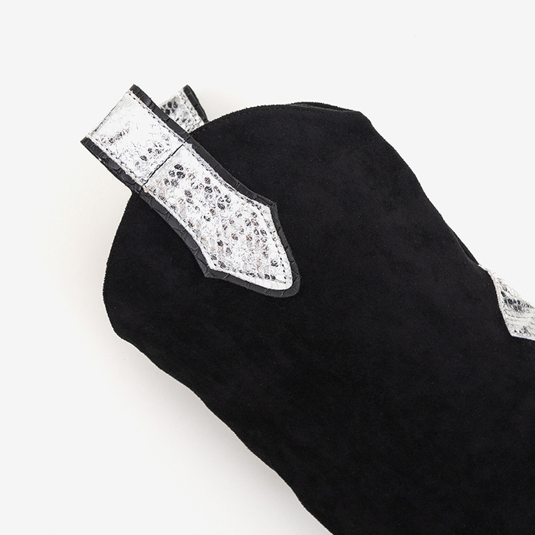 - Stylische Stiefeletten mit hohem Absatz und dekorativem Aufroll-Obermaterial. Schuhe aus weichem, ökologischem Wildleder. Die Einlegesohle ist aus Stoff. Solide verarbeitet und unglaublich bequem.