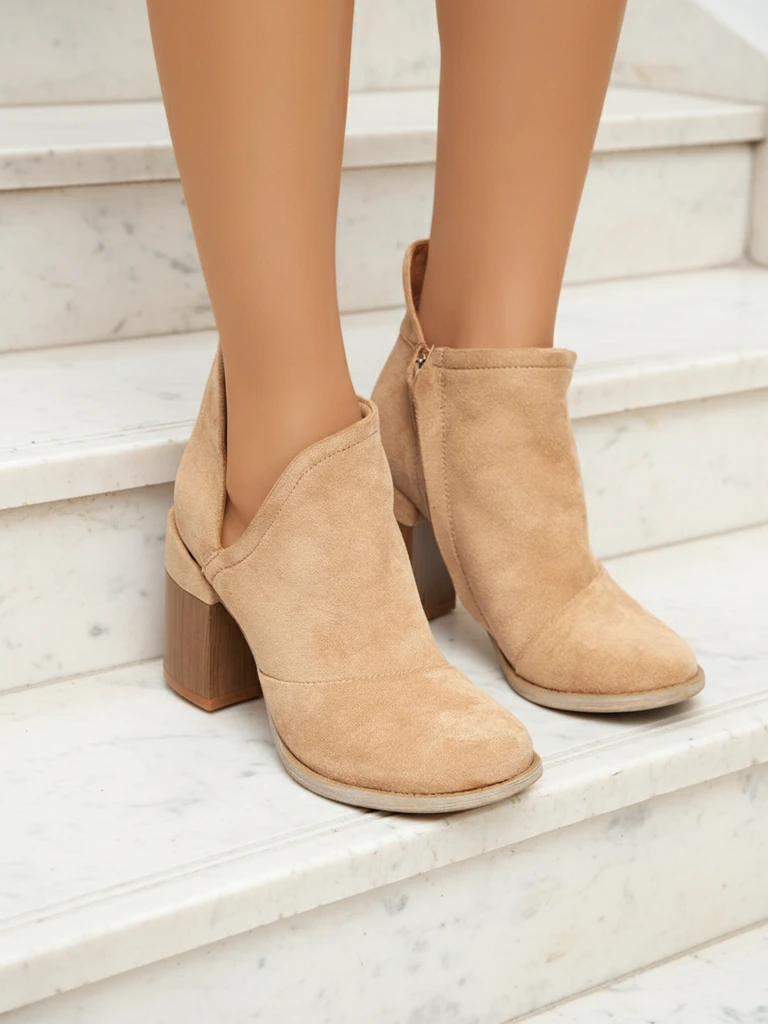 - Einzigartige Damenstiefel mit Cut-Outs an einem stabilen Pfosten. Das Obermaterial besteht aus Öko-Wildleder und die Innensohle ist mit ökologischem Leder bezogen. Das Modell wird innen mit einem Reißverschluss geschlossen. Passt perfekt zu jedem alltägli