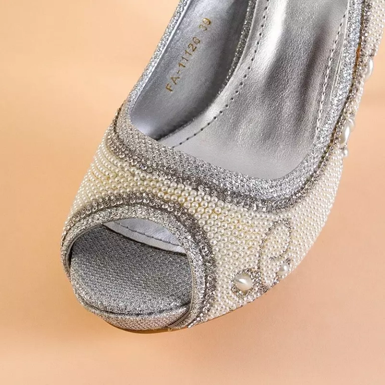 - Sensationelle Damenpumps, Stilettos, verziert mit Zirkonia und Perlen. Das Modell besteht aus mit Glitzer überzogenem Stoffmaterial mit einer Innensohle aus ökologischem Leder. Hinweis: Das Produkt weist Klebstoffspuren auf dem Material auf.