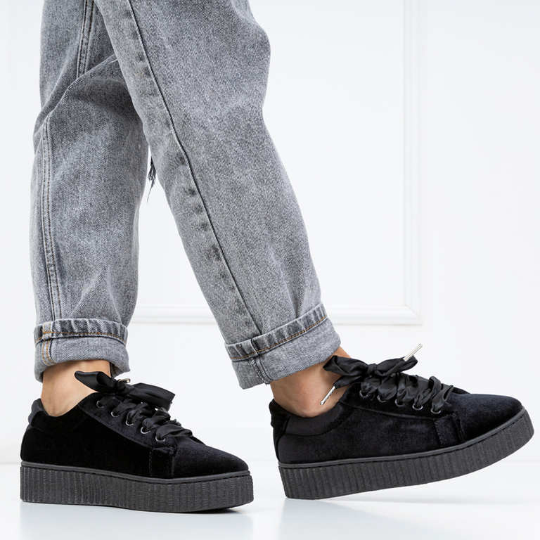 Schwarze Damen Plateau-Sneaker aus Velours Itoda - Schuhe