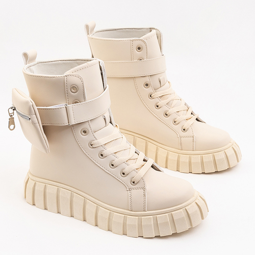 Beige Damenstiefel mit Tasche Namiko - Schuhe
