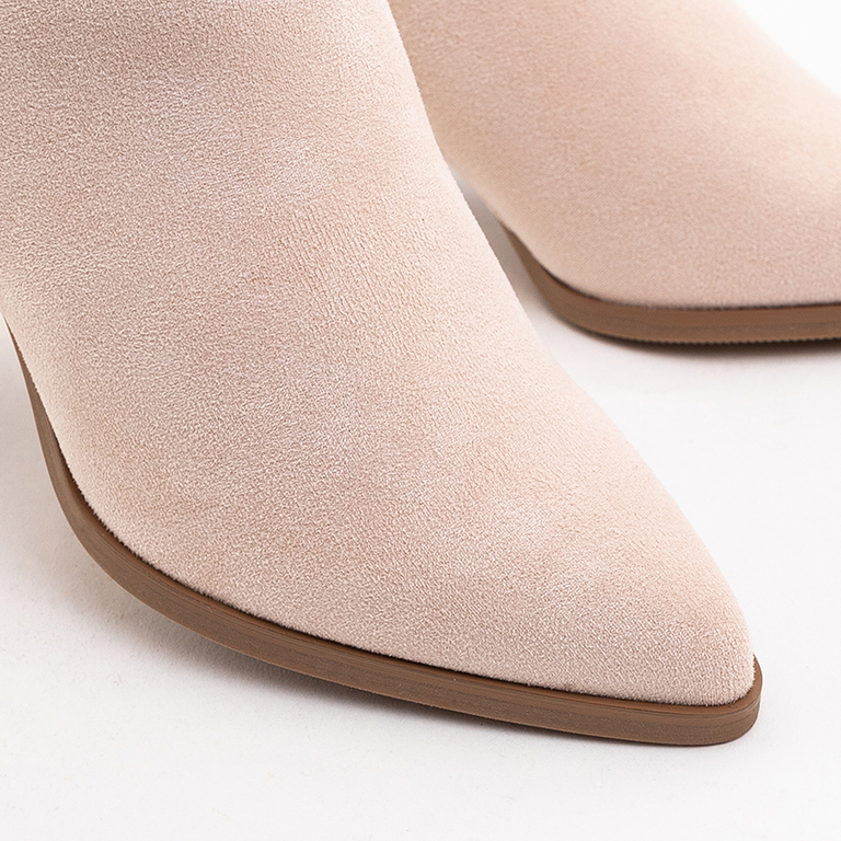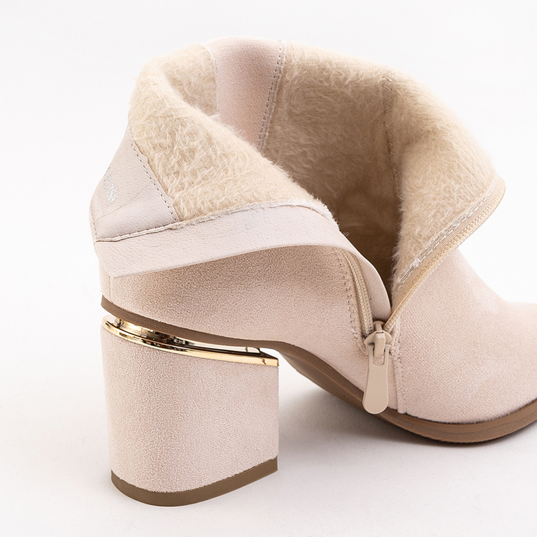 - Klassischer Damenstiefel aus ökologischem Wildleder. Modell am Pfosten, mit Reißverschluss. Darüber hinaus hat es goldene Elemente, die Stil verleihen.