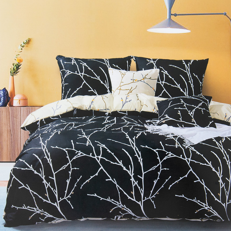 Schwarze Baumwollbettwäsche 200x220 Set 4-TEILIG - Bettwäsche