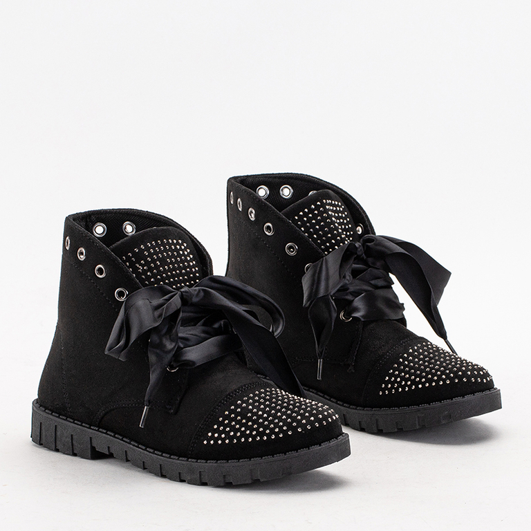 Schwarze Damen-Stiefeletten geschnürt mit Schleife mit Zirkonia Segadi - Schuhe