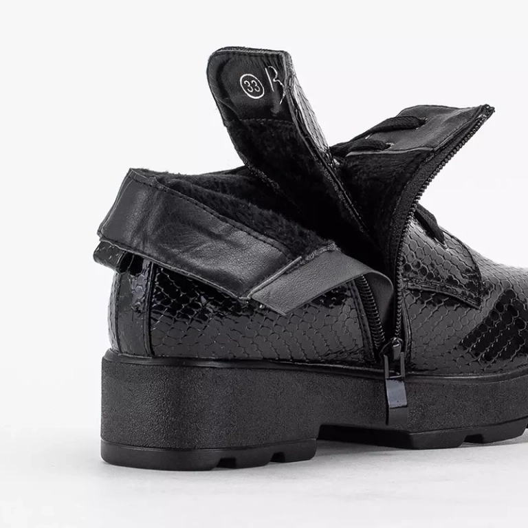 OUTLET Schwarze Kinderstiefel mit Prägung und Bindung Alamai - Schuhe
