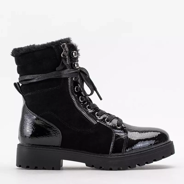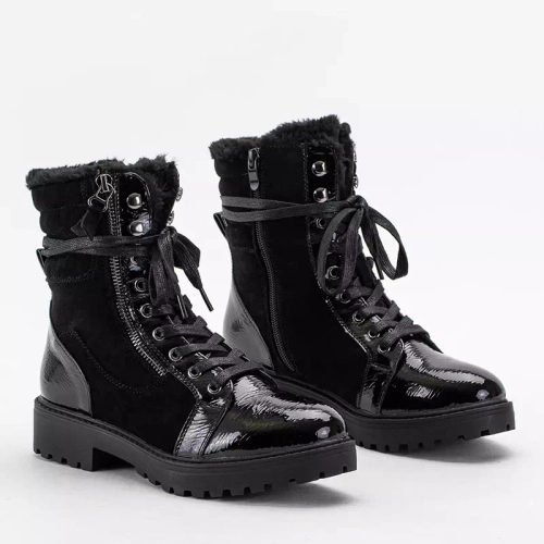 OUTLET Schwarze Damenstiefel teilweise lackiert Ginoko - Schuhe