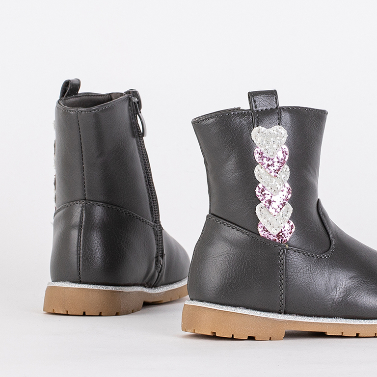 Graue Mädchenstiefel mit dekorativem Nokimi-Shoes-Obermaterial