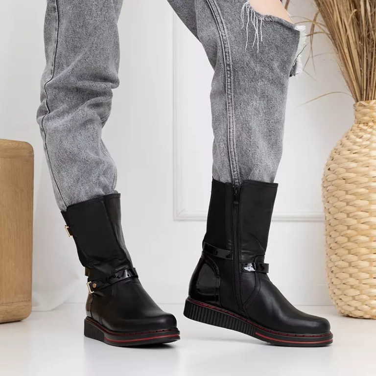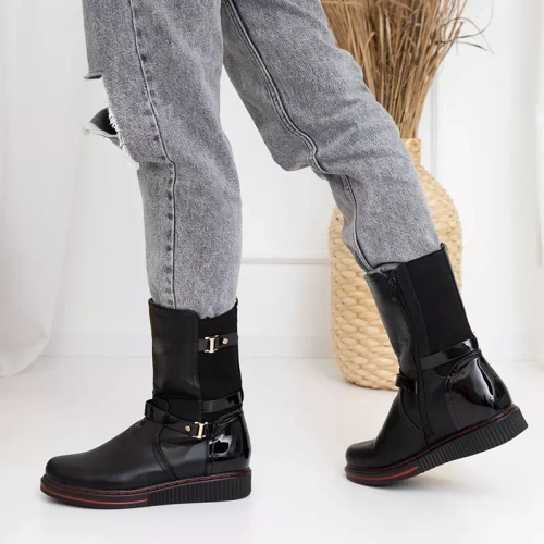 OUTLET Schwarze Damenstiefel mit lackierten Einsätzen Rojosco - Schuhe