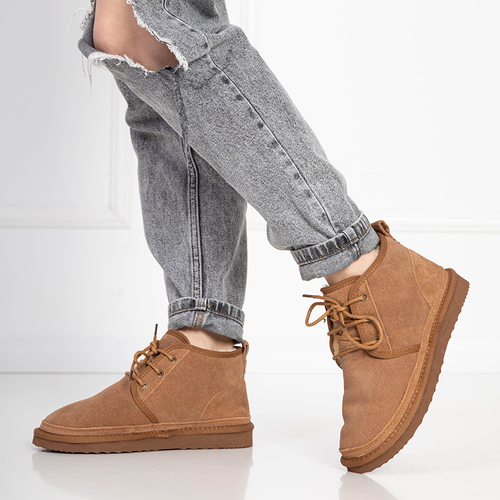 Hellbraune Damen-Schneestiefel mit Fell Miusho - Schuhe