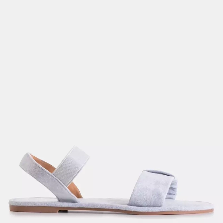 - Klassische Damensandale mit flachem Absatz, Obermaterial und Einlegesohlen aus Öko-Wildleder. Modell - Slip-on, keine Befestigung. Perfekt für Sommerkleider und Shorts! Hinweis: Das Produkt weist Kratzer auf dem Material auf.