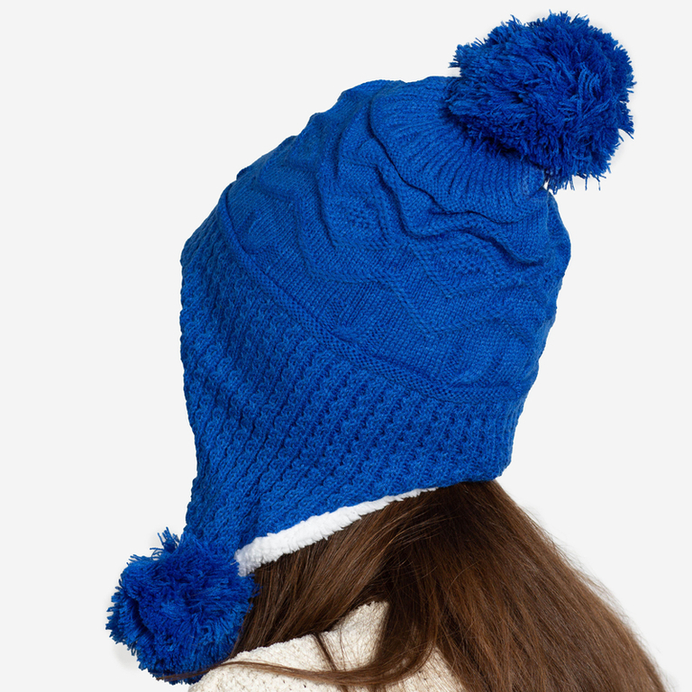Kobaltisolierte Damenmütze mit Pompons - Accessoires