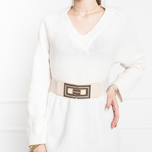 Elastischer Damengürtel beige mit goldener Schnalle mit Zirkonia - Accessoires