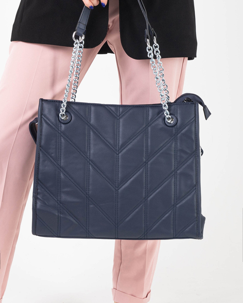 Dunkelblaue elegante Damenhandtasche mit Griffen an den Ketten - Accessoires