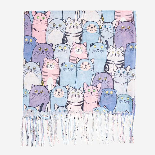 Blauer Damenschal mit bunten Katzen - Accessoires