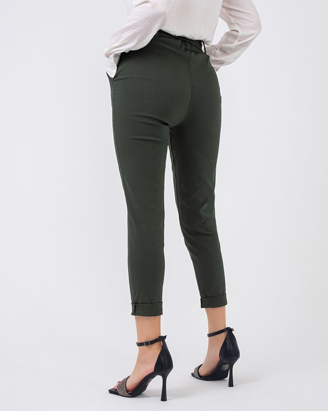 Khakifarbene Damenhose mit hoher Taille - Kleidung