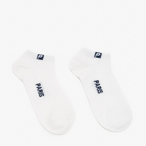 Kurze Herrensocken aus weißer Baumwolle mit schwarzen Aufschriften - Unterwäsche